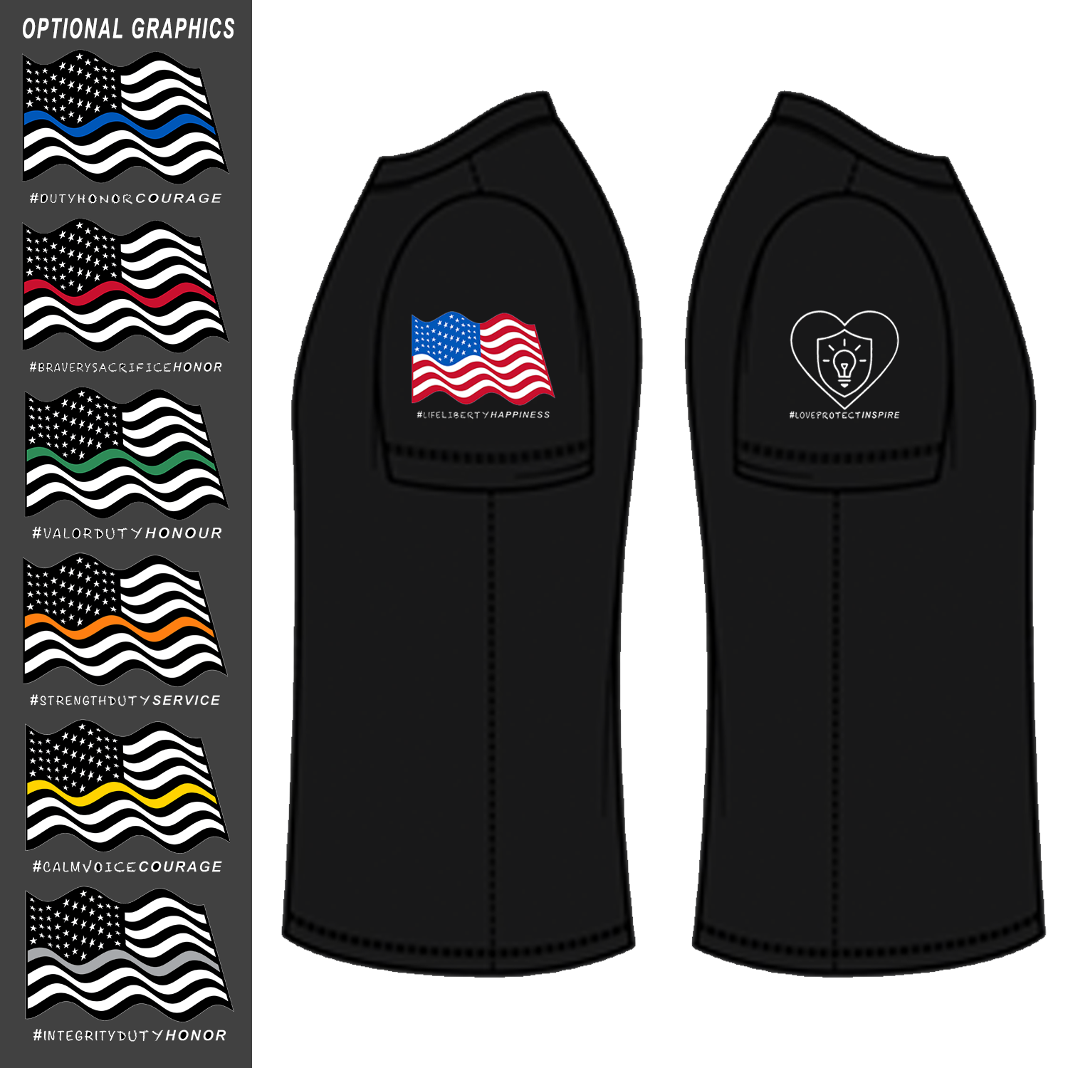 Every shirt features the LoveProtectInspire™ logo on the right shoulder