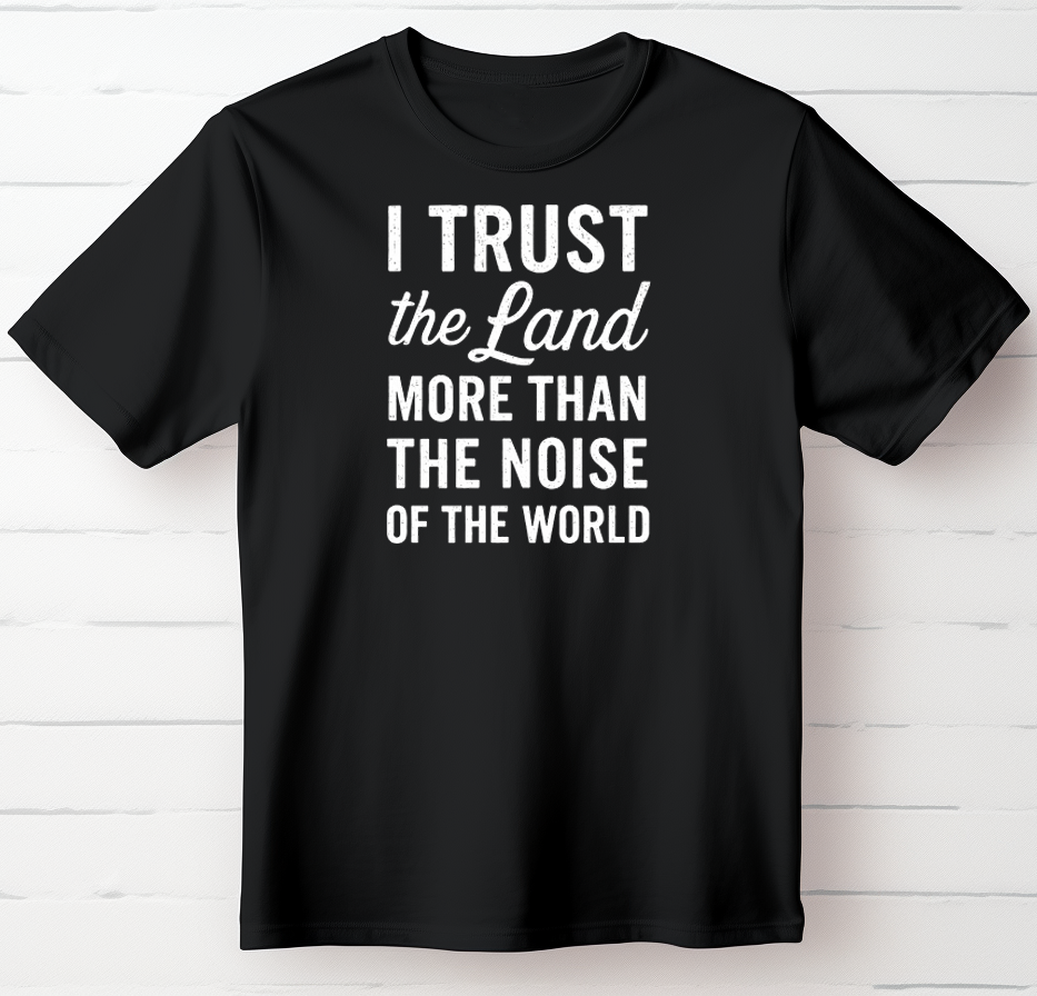This nature over noise graphic tee speaks to people who trust the land more than opinions. “I Trust the Land More Than the Noise of the World” reflects a mindset built through experience, patience, and time spent outdoors where truth stays simple.