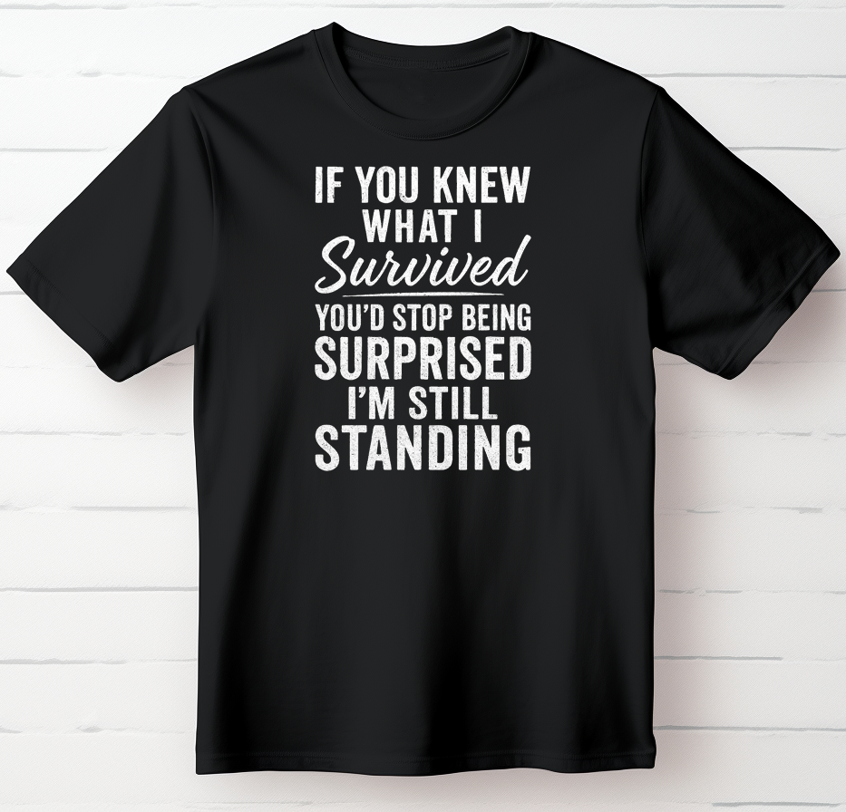 This still standing resilience shirt speaks for the battles no one saw. “If You Knew What I Survived, You’d Stop Being Surprised I’m Still Standing.” reflects endurance built through hardship, grit earned through experience, and strength that doesn’t need explanation.