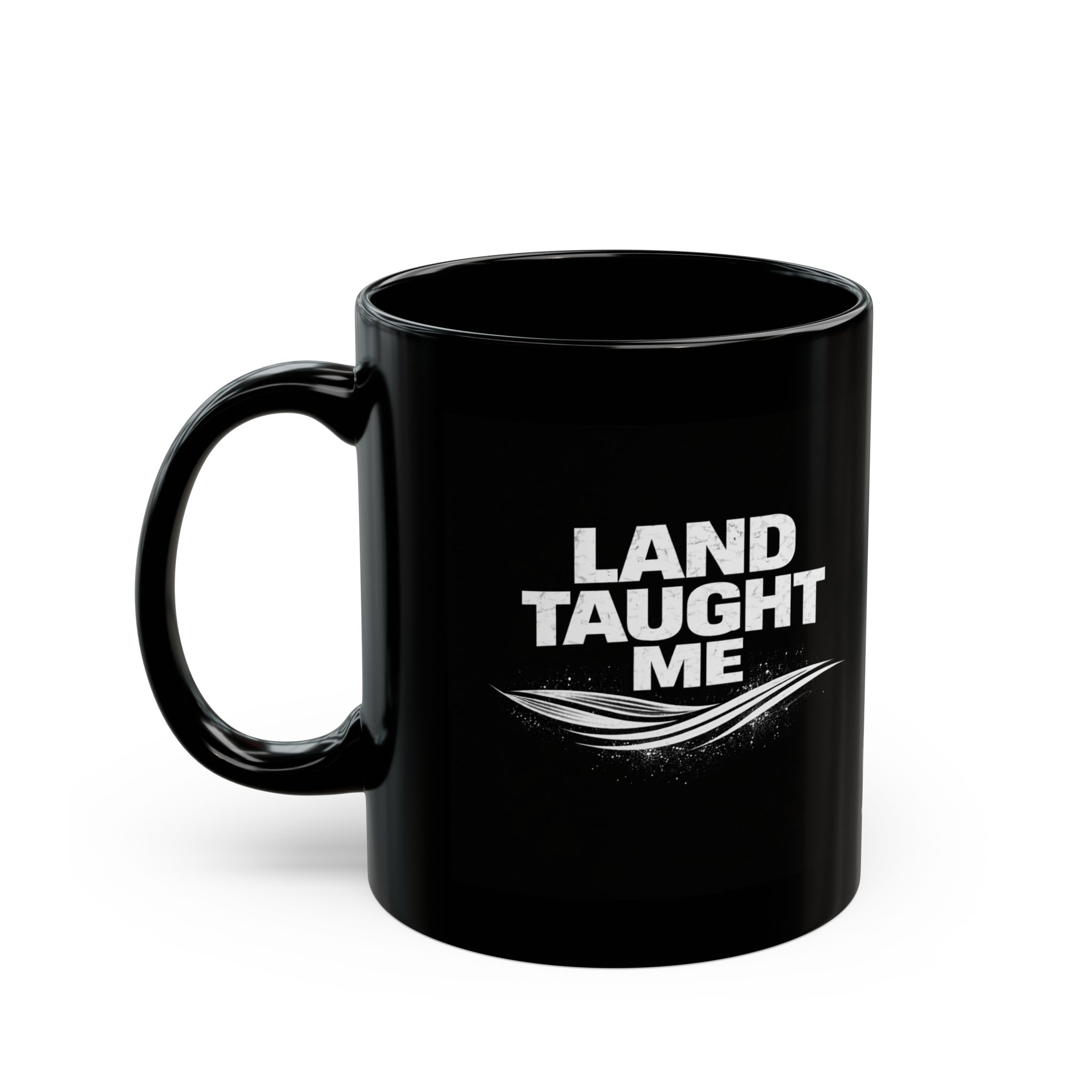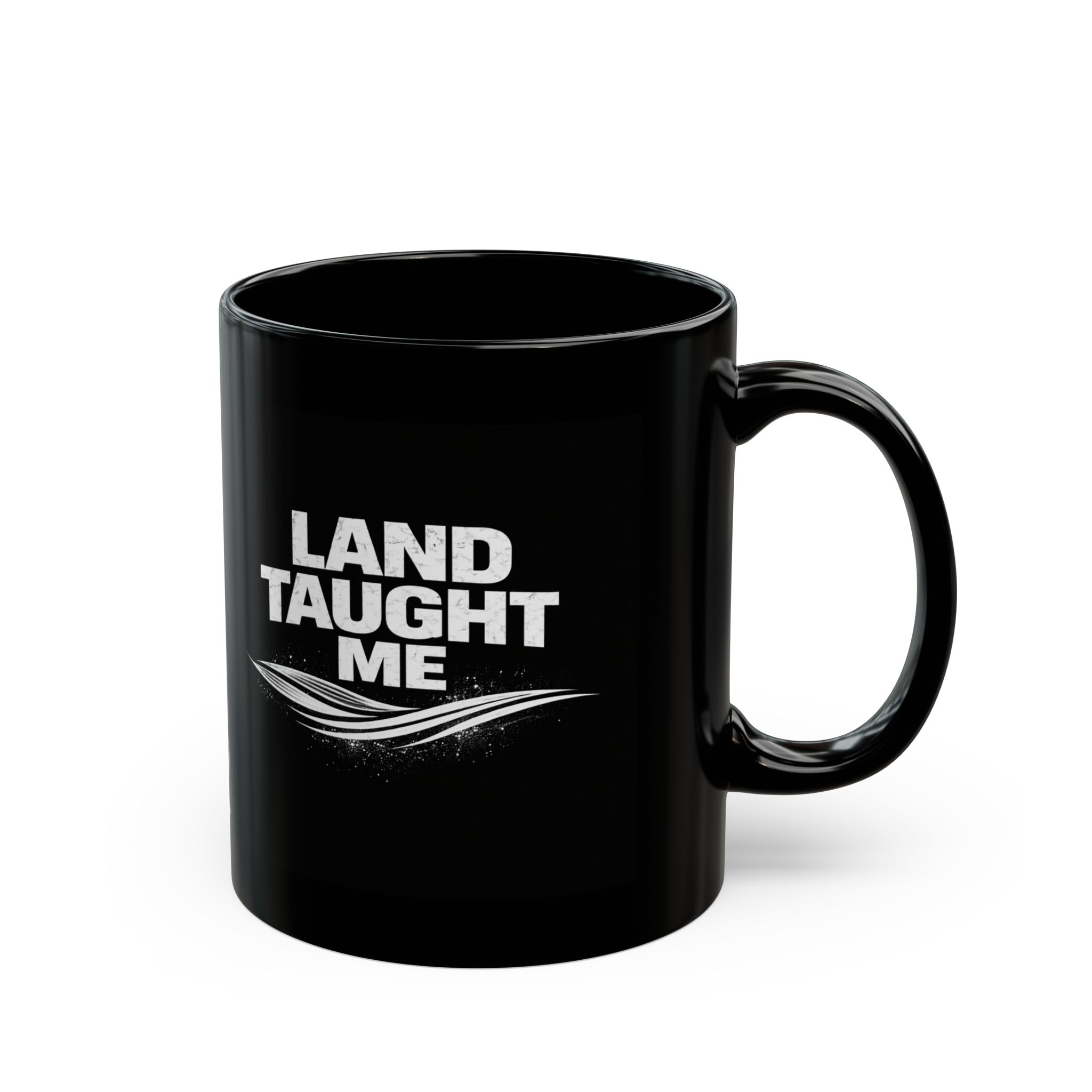 This glossy black ceramic mug brings a calm, grounded energy to slow mornings and late-night work sessions. The subtle white “Land Taught Me” emblem sits low on the cup, like a quiet stamp of belonging — for people who prefer hands-on weekends, muddy boots, and coffee sipped between projects. It feels sturdy in the hand thanks to a C-shaped handle and a balanced weight. The deep-black surface makes the white art pop while blending seamlessly into a workshop bench, camper kitchen, or a home office lined with plants and tools. Durable enough for everyday use, it handles reheats in the microwave and cleans up in the dishwasher without dulling the glossy finish. This mug fits the rhythm of makers, outdoors-first families, and anyone who likes their daily ritual to feel honest and rooted.