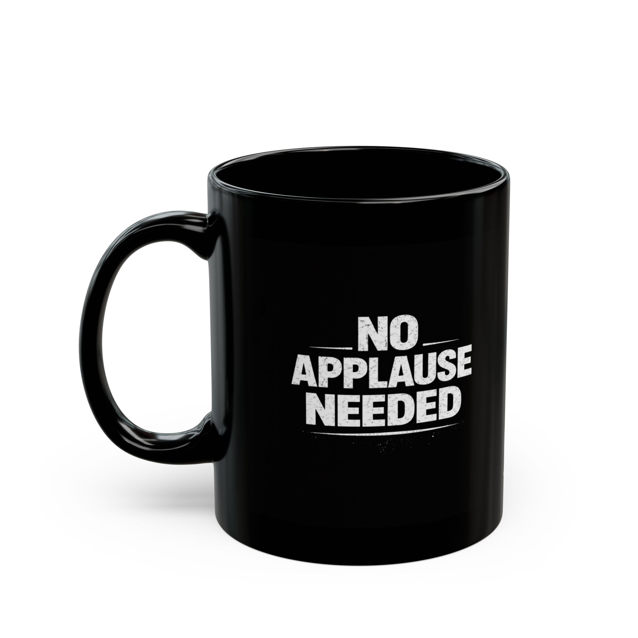 This glossy black ceramic mug brings a calm, grounded energy to slow mornings and late-night work sessions. The subtle white “No Applause Needed” emblem sits low on the cup, like a quiet stamp of belonging — for people who prefer hands-on weekends, muddy boots, and coffee sipped between projects. It feels sturdy in the hand thanks to a C-shaped handle and a balanced weight. The deep-black surface makes the white art pop while blending seamlessly into a workshop bench, camper kitchen, or a home office lined with plants and tools. Durable enough for everyday use, it handles reheats in the microwave and cleans up in the dishwasher without dulling the glossy finish. This mug fits the rhythm of makers, outdoors-first families, and anyone who likes their daily ritual to feel honest and rooted.
