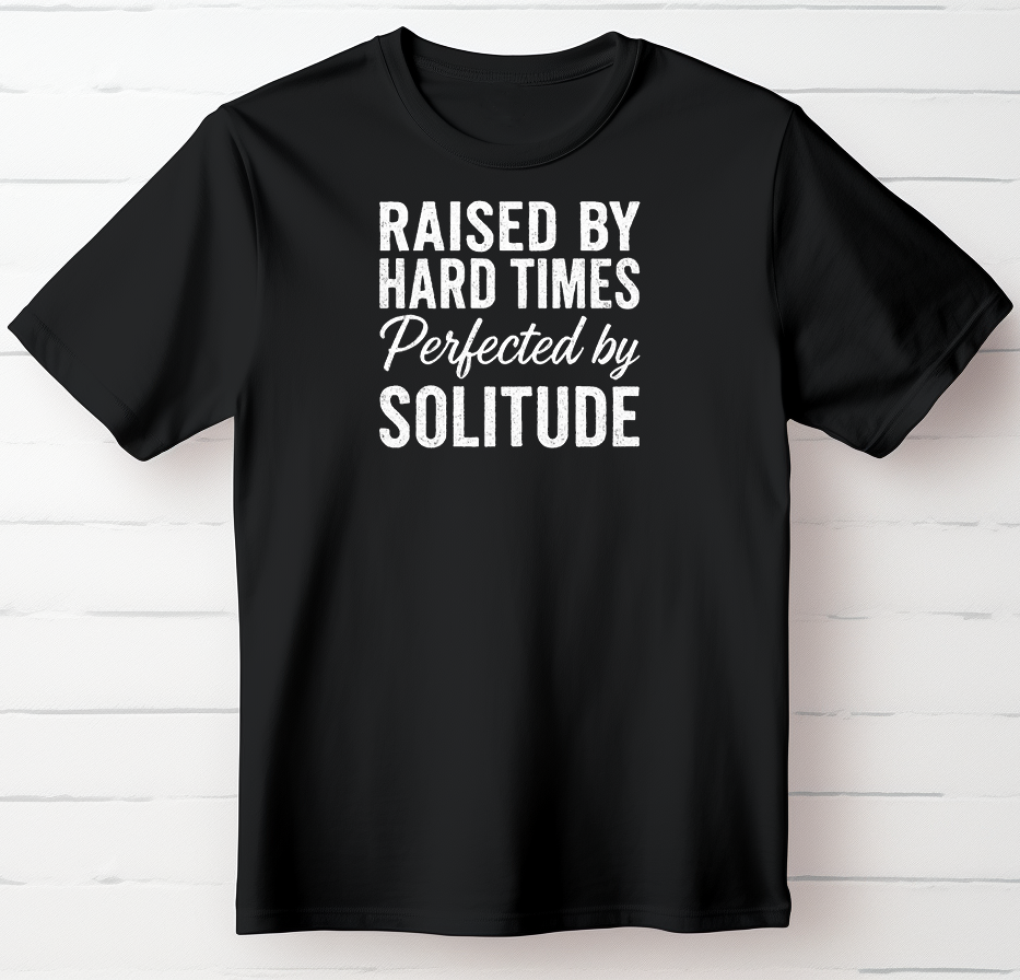 This hard times built me shirt speaks to the people shaped by struggle and refined by quiet moments alone. “Raised By Hard Times Perfected By Solitude” is a message for those who grew stronger when life got harder and found focus in the silence of the outdoors.