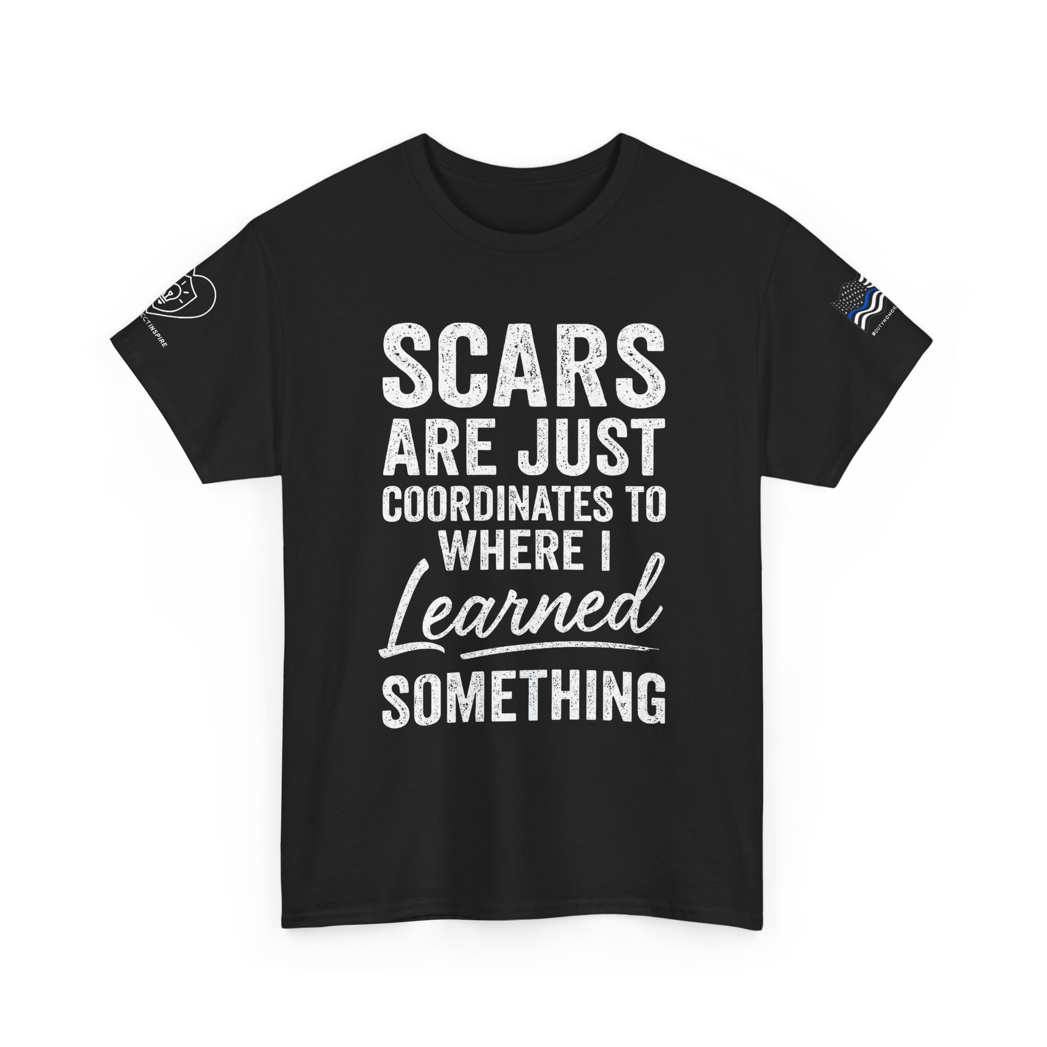 This scars as strength mindset tee reframes pain as progress. “Scars Are Just Coordinates to Where I Learned Something.” speaks to people who turned hardship into wisdom and carry their experiences forward instead of hiding them.