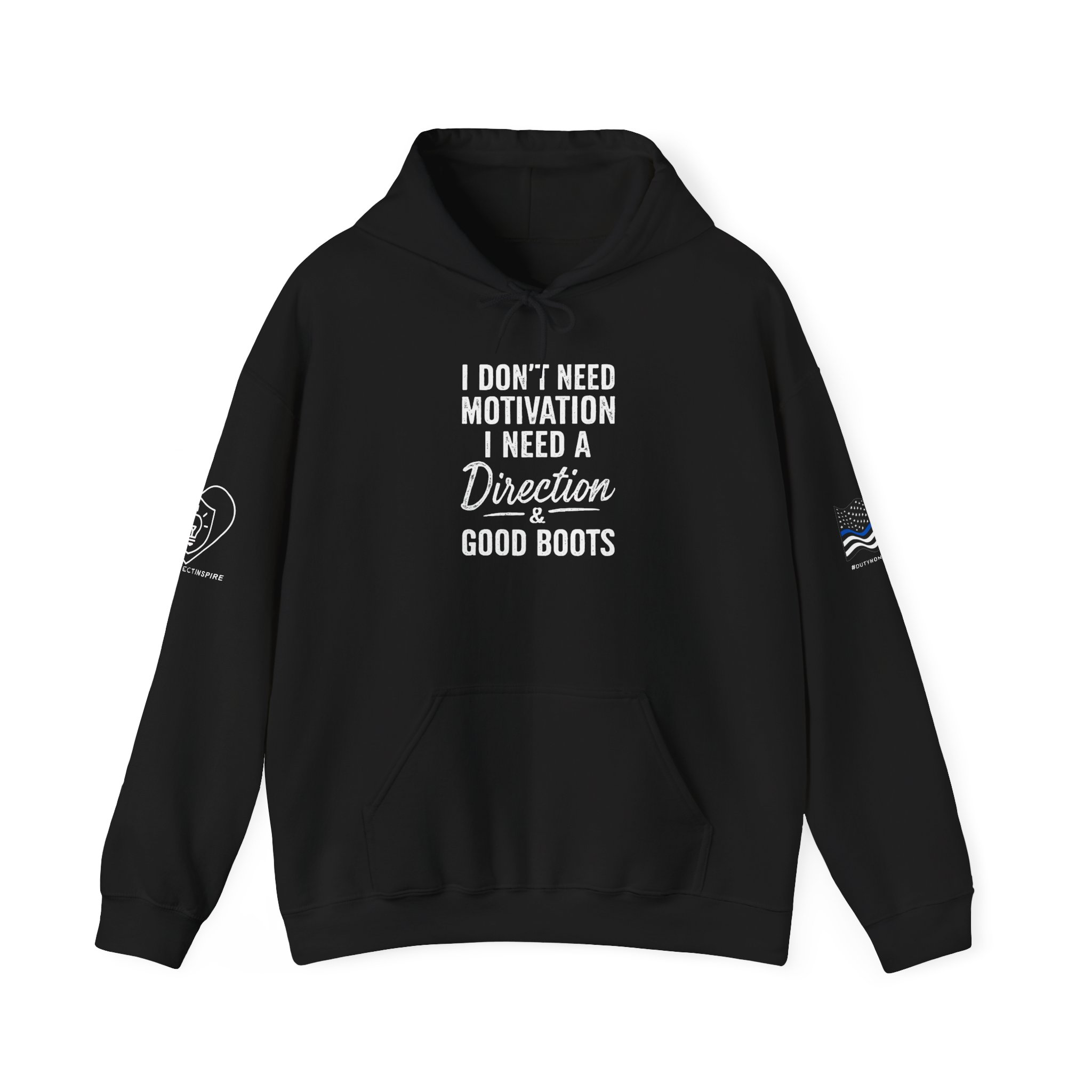 This purpose not motivation hooodie is built for people who don’t wait for inspiration — they move with intention. “I Don’t Need Motivation I Need a Direction and Good Boots” is a message for outdoorsmen, hikers, and anyone who trusts a clear path over empty hype. Each shirt is printed on a black Gildan 100% Heavy Cotton tee using durable DTF transfers. Every shirt is made to order for sharp detail and long-lasting wear. Every shirt features the LoveProtectInspire™ logo on the right shoulder. If you live by purpose and rely on direction more than motivation, this shirt matches your mindset.